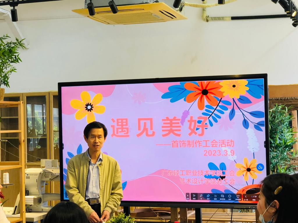 春日暖阳,万物复苏。为庆祝“三八”妇女节,让我校女教职工度过一个充实愉快、富有意义的节日,由广东轻工职业技术学院工会、艺术设计学院分工会主办,艺术设计学院社会服务与培训中心、服装与服饰专业群承办的首饰、皮具制作亲子体验的公益活动,分别在3月9日和3月11日,在我校新港校区东区第一工业实训楼601温情举行。学校工会主席石朝阳、艺术设计学院党总支书记李宽松等领导嘉宾出席了本次活动开幕式。开幕式由艺术设计学院社会服务与培训中心主任胡信川主持。