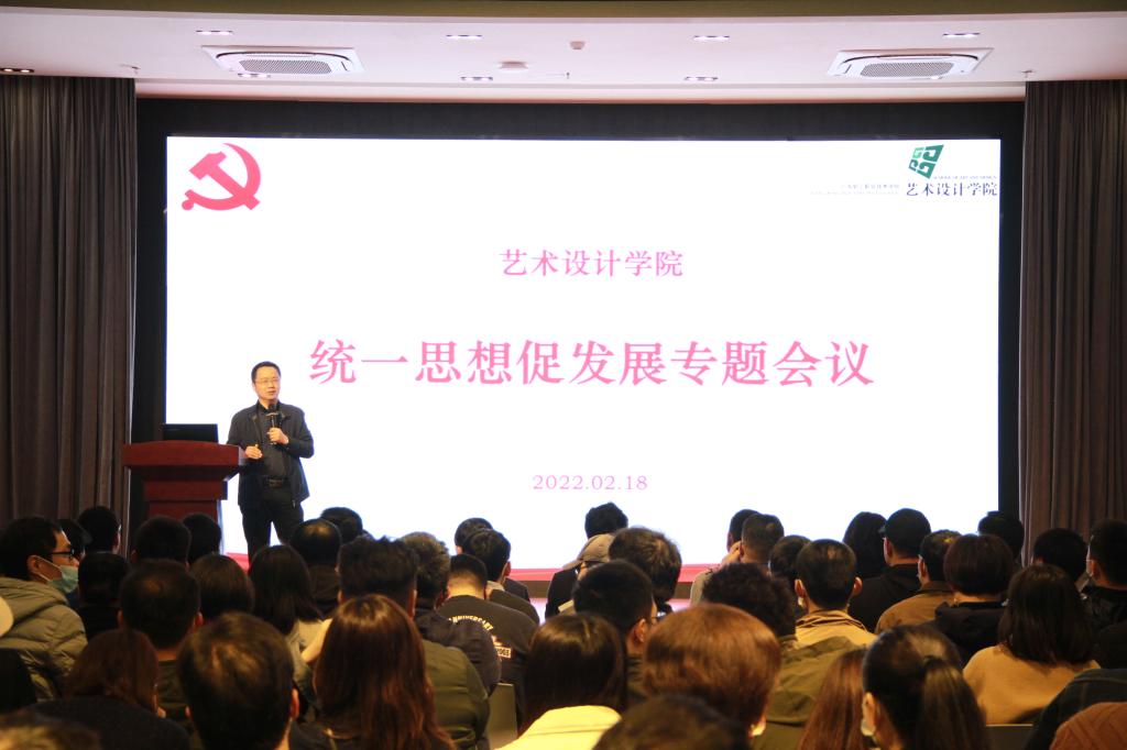 2月18日下午,艺术设计学院在第二工业实训楼一楼多功能商演中心举行全体教职员工大会,艺术设计学院院长桂元龙、党总支书记李宽松、副书记陈丽英、副院长徐禹、伏波、卢应涛以及全体教师参加了本次大会。会议由党政办主任张锡莹主持。
