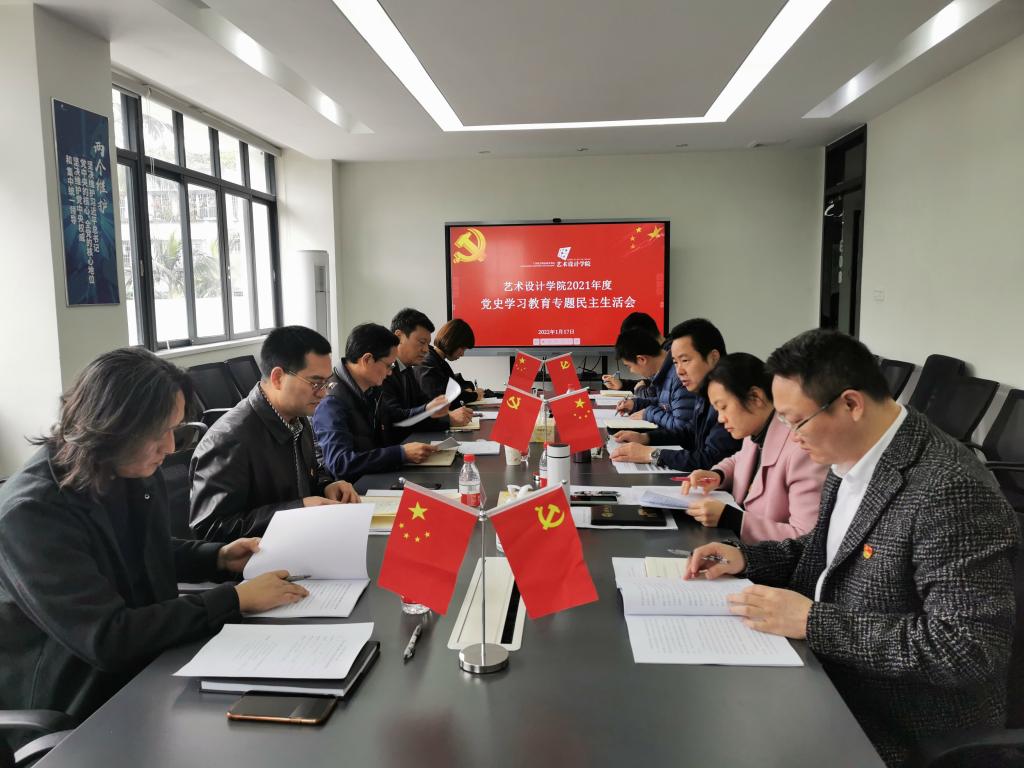 为了深刻总结党史学习教育的成效和经验,进一步贯彻落实习近平新时代中国特色社会主义思想和党的十九届六中全会精神,2022年1月17日下午,艺术设计学院在敬师楼308会议室召开了2021年度党史学习教育专题民主生活会。学校党委书记杜安国同志出席指导会议,党委组织统战部部长黄华、学院非党员领导班子成员列席会议。