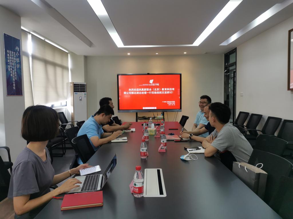 2021年5月27日上午,凤凰新联合(北京)教育科技有限公司郭功涛总经理一行三人到访我院。我院桂元龙院长、徐禹副院长、伏波副院长、张锡莹主任在广州校区敬师楼308会议室接待了来访嘉宾。