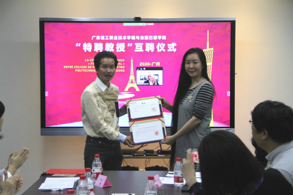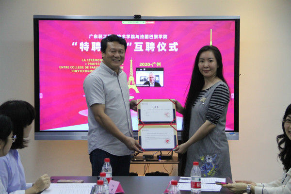 为落实“双高”专业群建设,克服疫情影响,推进我院与法国巴黎学院的项目合作,10月28日,我院与法国巴黎学院举行了隆重的“特聘教授”线上聘任仪式。巴黎学院校长拉加德教授、巴黎学院国际学院副院长菲尼克教、巴黎学院中方代表雷思茵女士、我校李丽副校长、许鸿飞国际文化创意学院许鸿飞院长、艺术设计学院桂元龙院长、国际交流中心张佩宜主任以及中法双方的相关人员出席了仪式。