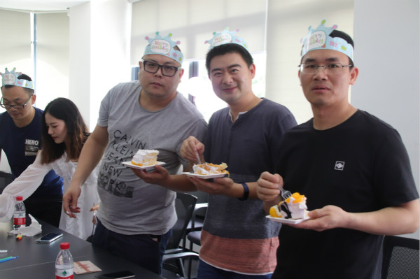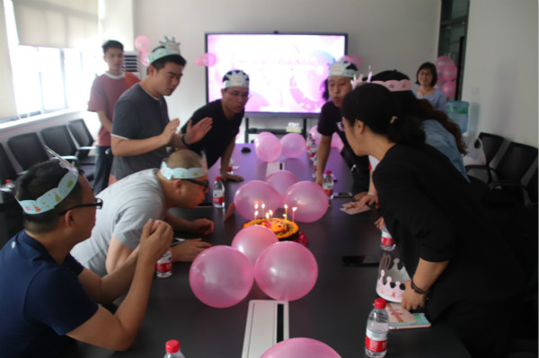 2019年4月23日,艺术设计学院敬师楼308再次迎来热闹非凡的集体生日会。在这个春意盎然的季节里,徐禹、王旭玮、伏波、徐士福、沈大明、徐向荣、牛尧、张晓晴、赖晓玲等寿星老师齐聚一堂,应邀参加由工业协会的同学们为他们精心筹备的集体生日会。 烛光中,大家唱起生日歌,献上最真诚的祝福;欢声笑语中,老师们开心地分享甜蜜的蛋糕。生日会上,桂元龙院长对老师们为设计学院做的巨大贡献给予充分的肯定并表达感谢,也衷心祝福每一位设计学院4月份生日的老师们生日快乐,工作顺利!