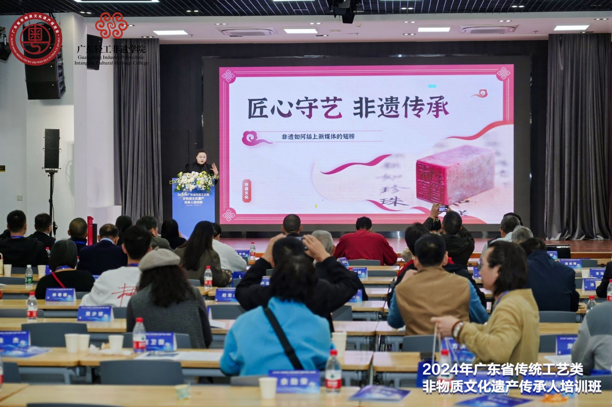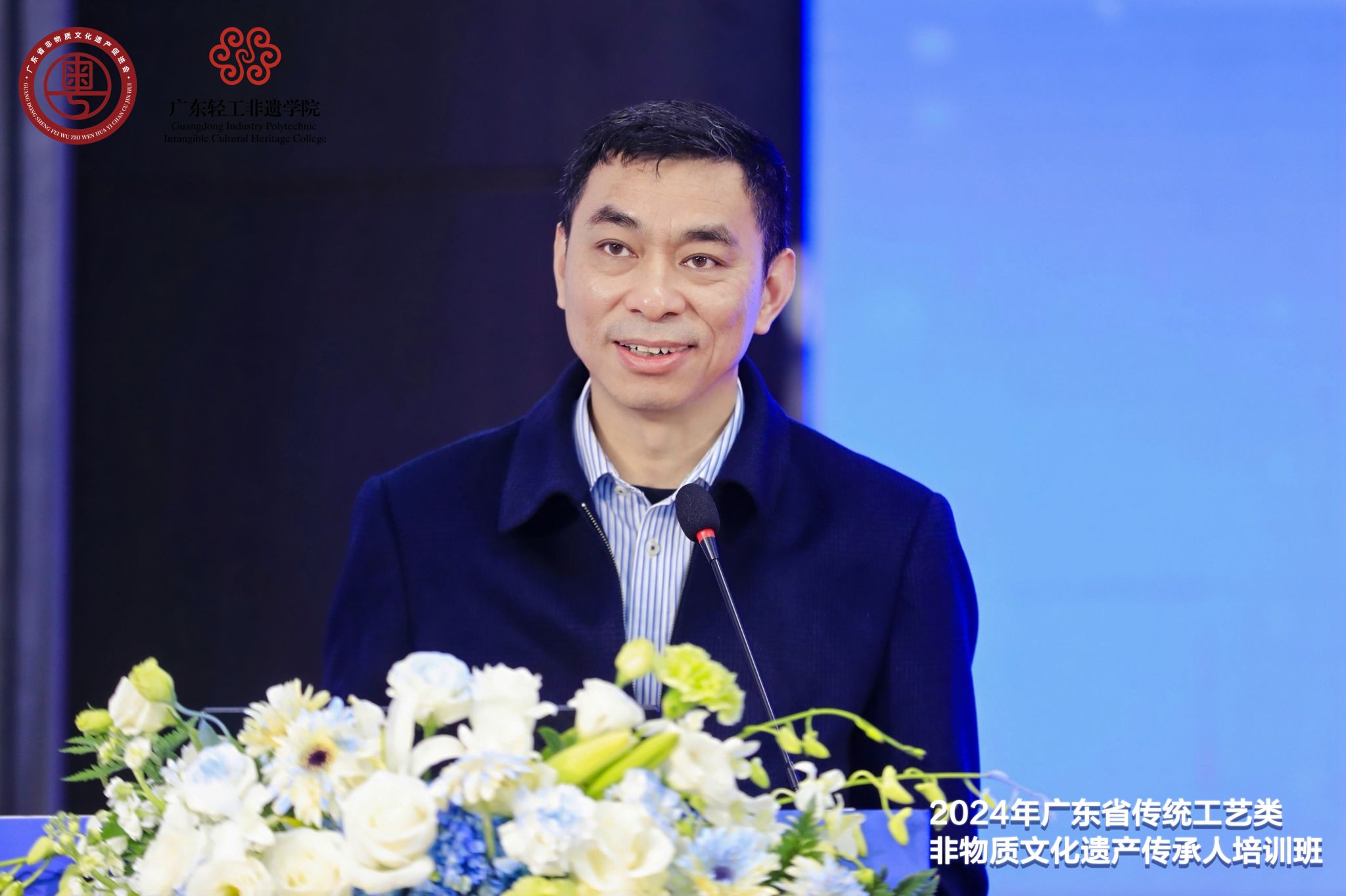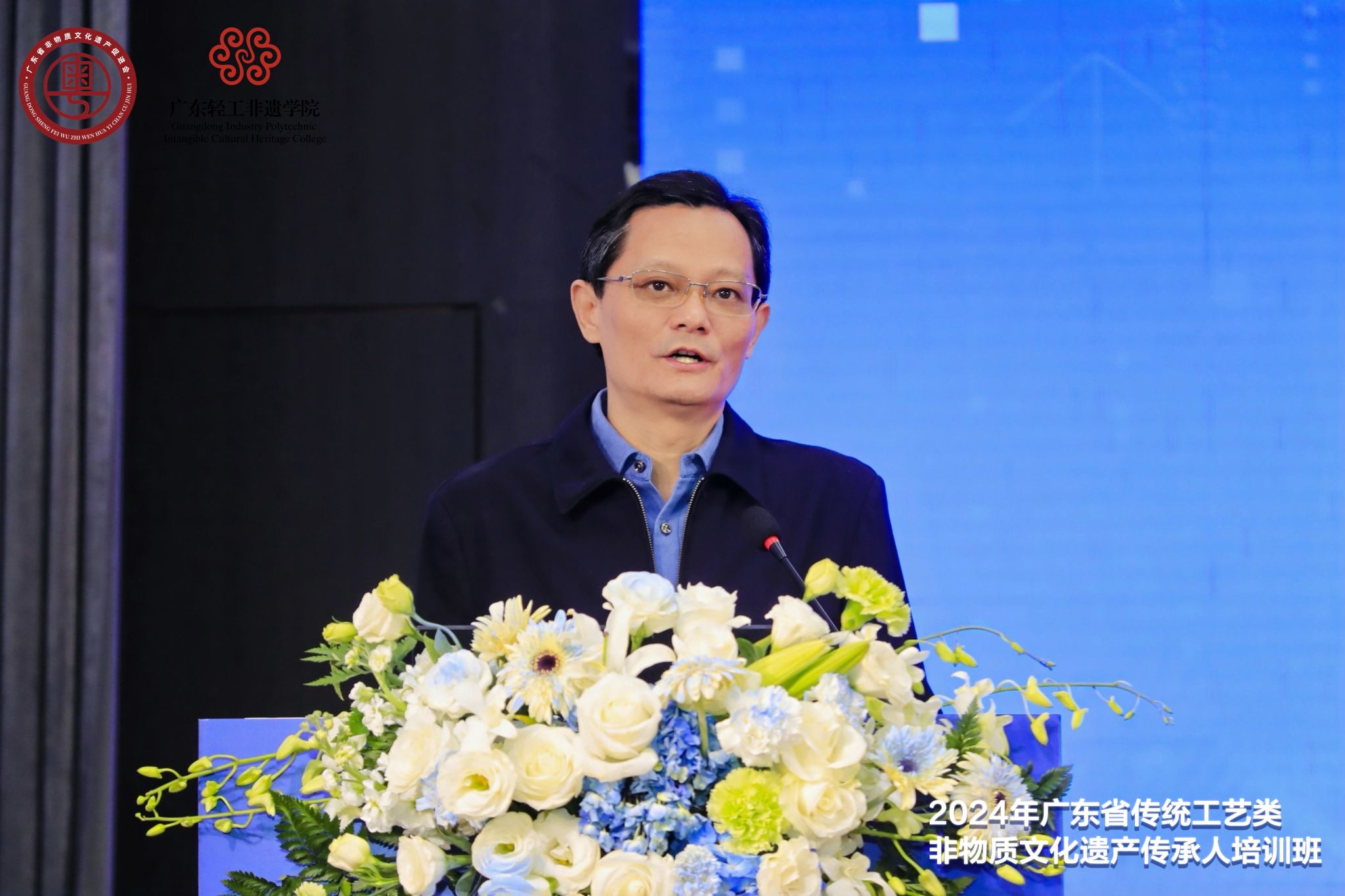 12月10日,由广东省文化和旅游厅主办、广东省非物质文化遗产促进会承办、广东轻工职业技术大学协办的2024年广东省传统工艺类非物质文化遗产传承人培训班正式开班。广东省文化和旅游厅二级巡视员唐国华、广东轻工职业技术大学党委书记杜安国、广东轻工职业技术大学党委副书记梁艳珍、广东省非物质文化遗产促进会常务副会长兼秘书长朱钢出席活动,全国知名专家学者、自媒体博主,以及来自全省21个地市线上线下近300名学员参加开班仪式。