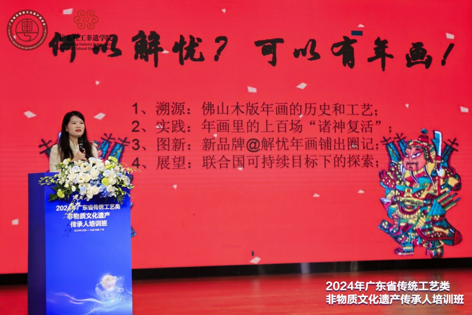 刘钟萍以《非遗当随时代:何以解忧?可以有年画!》为题作分享,她深入阐述了如何让年画与人们的生活构建起更为紧密且多元的联系,真正实现让年画 “活起来” 并 “被用起来” 的目标。紧扣现代人对美好生活的向往与追求,巧妙地为年画里承载的传统祈福元素注入新时代的活力,使这一古老艺术形式在现代社会中重新绽放光彩,吸引更多人关注、参与到非遗保护与传承的伟大事业中来。