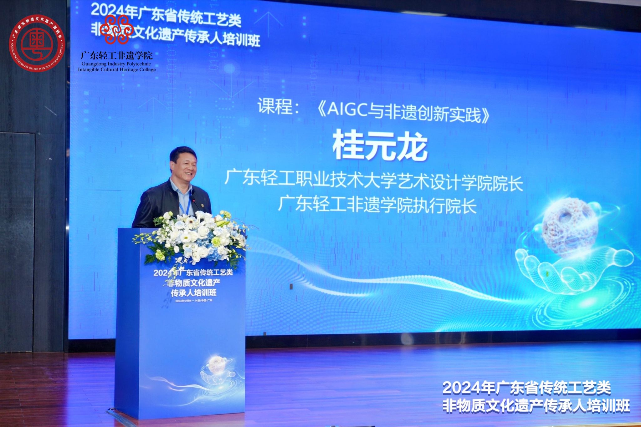 培训班教师代表,广东轻工职业技术大学艺术设计学院院长、广东轻工非遗学院执行院长桂元龙表示,本次培训班落地广轻大,是广东省文化和旅游厅对我校办学实力和承办能力的信任与托付,我们将严格按照既定方案将全部课程落到实处,发挥我院开展“创意设计+数字技术”相融合人才培养教育教学改革的经验,协同广东省非物质文化遗产促进会,整合校内外优质资源,切实办好本次培训班。