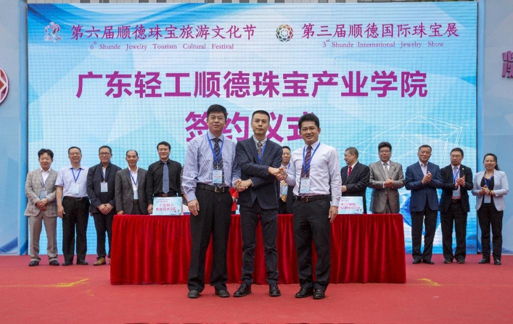 与佛山市顺德区郑敬诒职业技术学校、保发珠宝(中国)有限公司共建广东轻工顺德珠宝产业学院,开展融合教学、培训等业务,3+2联合办学,开设的珠宝设计专业 2019年开始招收学生。